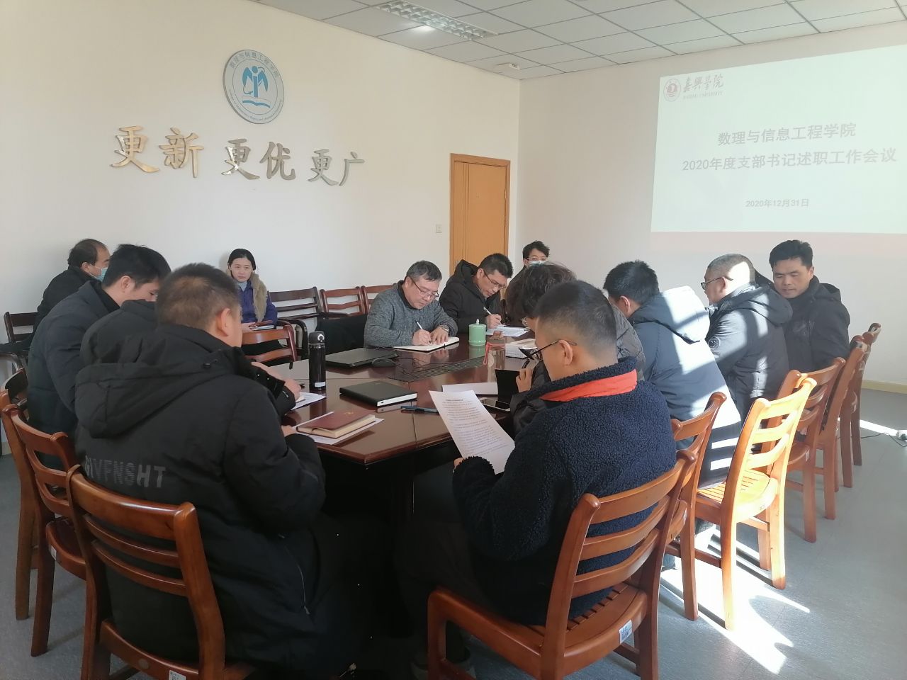 2020年12月31日中午,学院召开2020年度党支部书记工作述职会议,会议由学院党委书记马柏林主持,学院党委委员和全体支部书记参加会议。