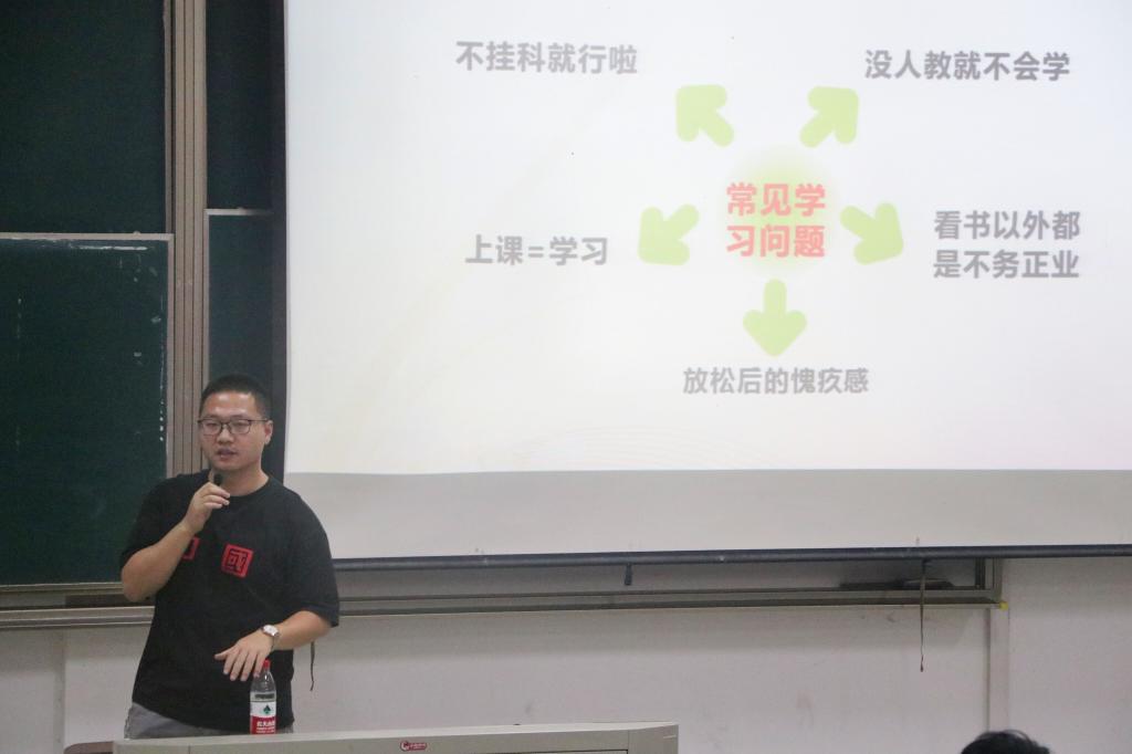 首先,童老师详细地为大家讲述了大一适应期中会遇到的学习上的不适应、人际关系带来的压力、自我成长、睡眠、抑郁症等问题,并提出了相应的解决方案,还告诉大家要关心自己和身边同学,发现问题一定要及时报告。在讲座结束前的提问环节,老师用幽默的方式鼓励同学们积极提问,并仔细地回答了同学们提出的问题。