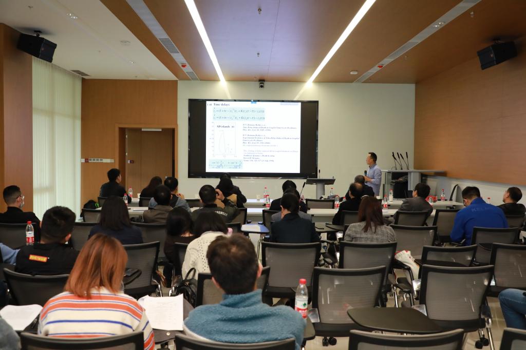 研讨会上,а√中文在线资源库姚成贵教授等7位学者分别围绕“时滞微分方程中的固定点解和同步周期解”“Limit theorems on the pointwise maxima of dependent Gaussian function processes”等主题作了精彩的报告。与会嘉宾结合报告主题和自身研究领域进行了研讨。