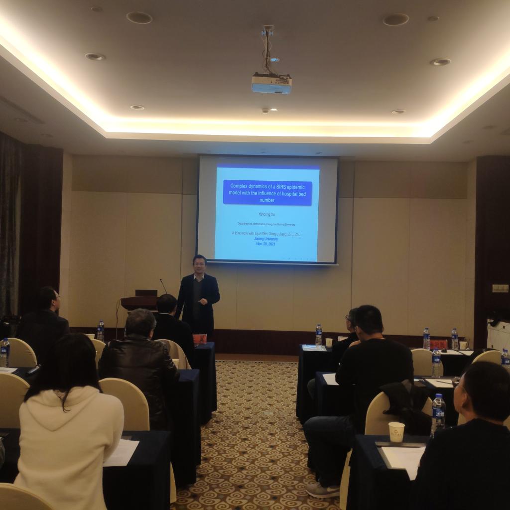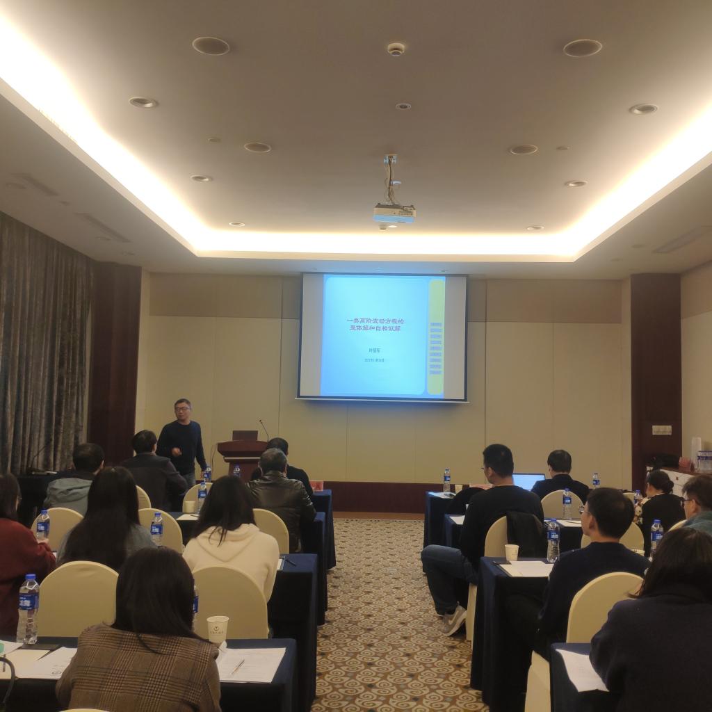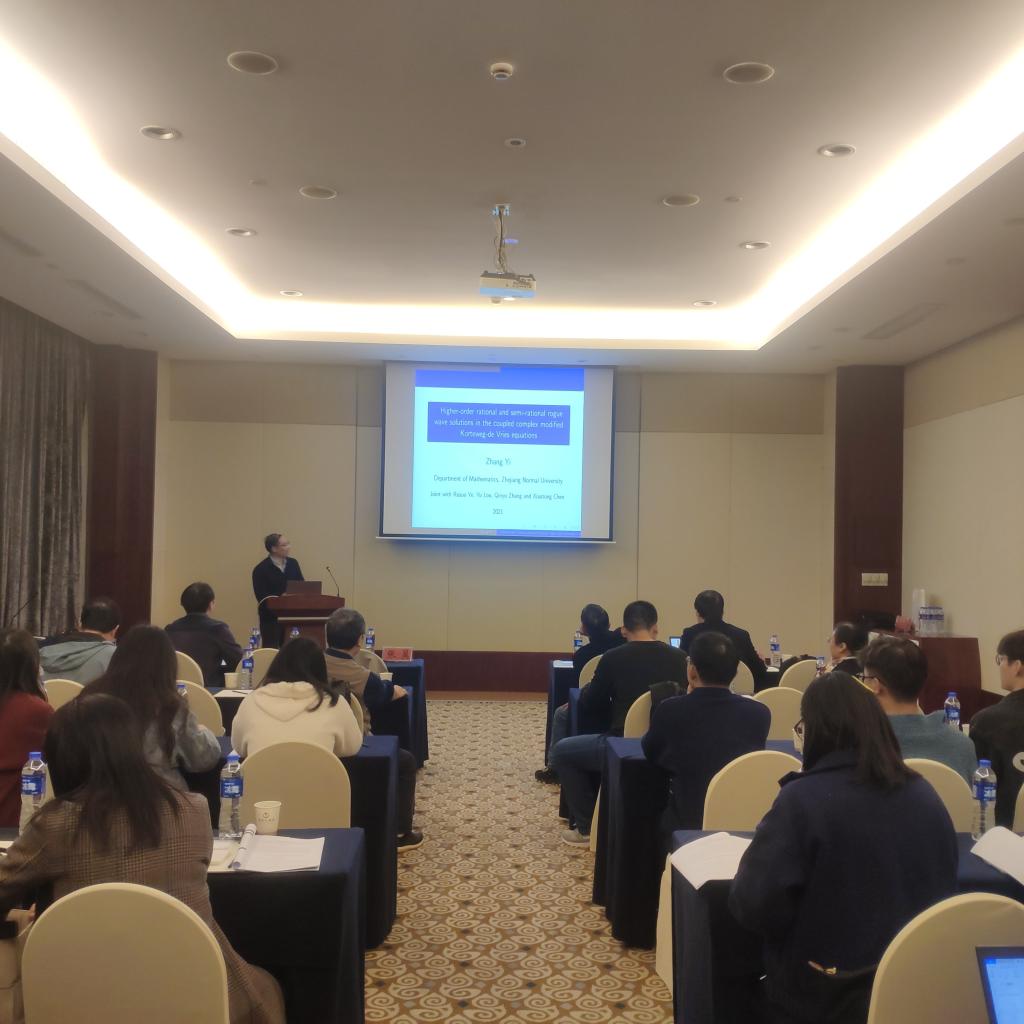 本次会议由学术报告和讨论交流两部分组成。在学术报告环节中,张翼教授、叶耀军教授、徐衍聪教授以及我校姚成贵教授分别做了题为《Higher-order rational and semi-rational rogue wave solutions in the coupled complex modified Korteweg-de Vries equations》《一类非线性高阶波动方程的整体解和自相似解》《Complex dynamics of a SIRS epidemic model with the influence of hospital bed number》和《时滞微分方程中的固定点解和同步周期解》的学术报告。在场师生也与四位教授作了互动探讨。