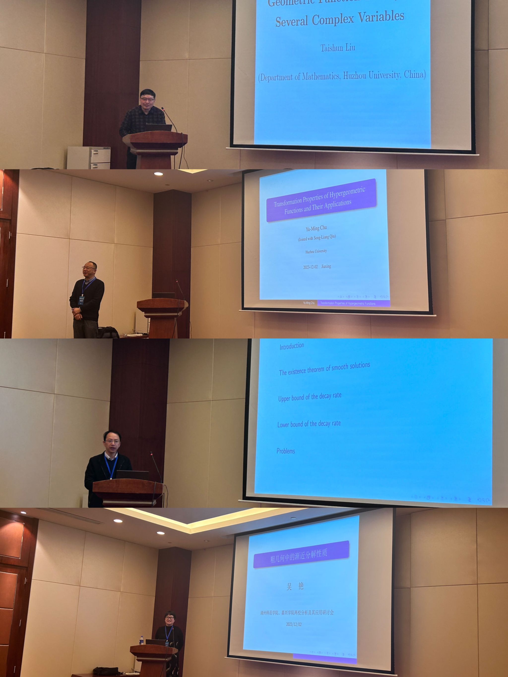 随后,参会专家学者就泛函分析、微分方程、几何分析等领域的前沿和热点问题进入深入研讨与交流。嘉兴学院а√中文在线资源库院长张景军教授、副院长吴艳教授、湖州师范学院享受国务院政府特殊津贴专家刘太顺教授、褚玉明教授,湖州师范学院周立芳教授、陈伟博士、何少勇博士以及嘉兴学院罗政博士、李波博士、陈思雨博士分别在此次学术论坛上报告了各自研究领域的最新学术成果。