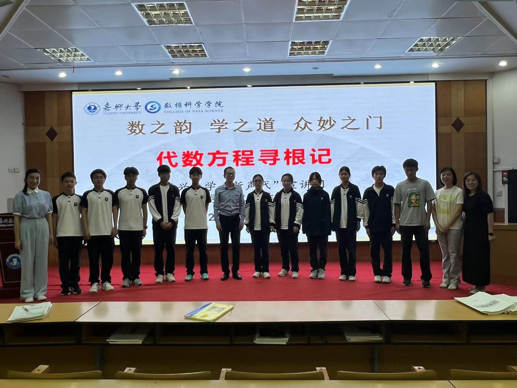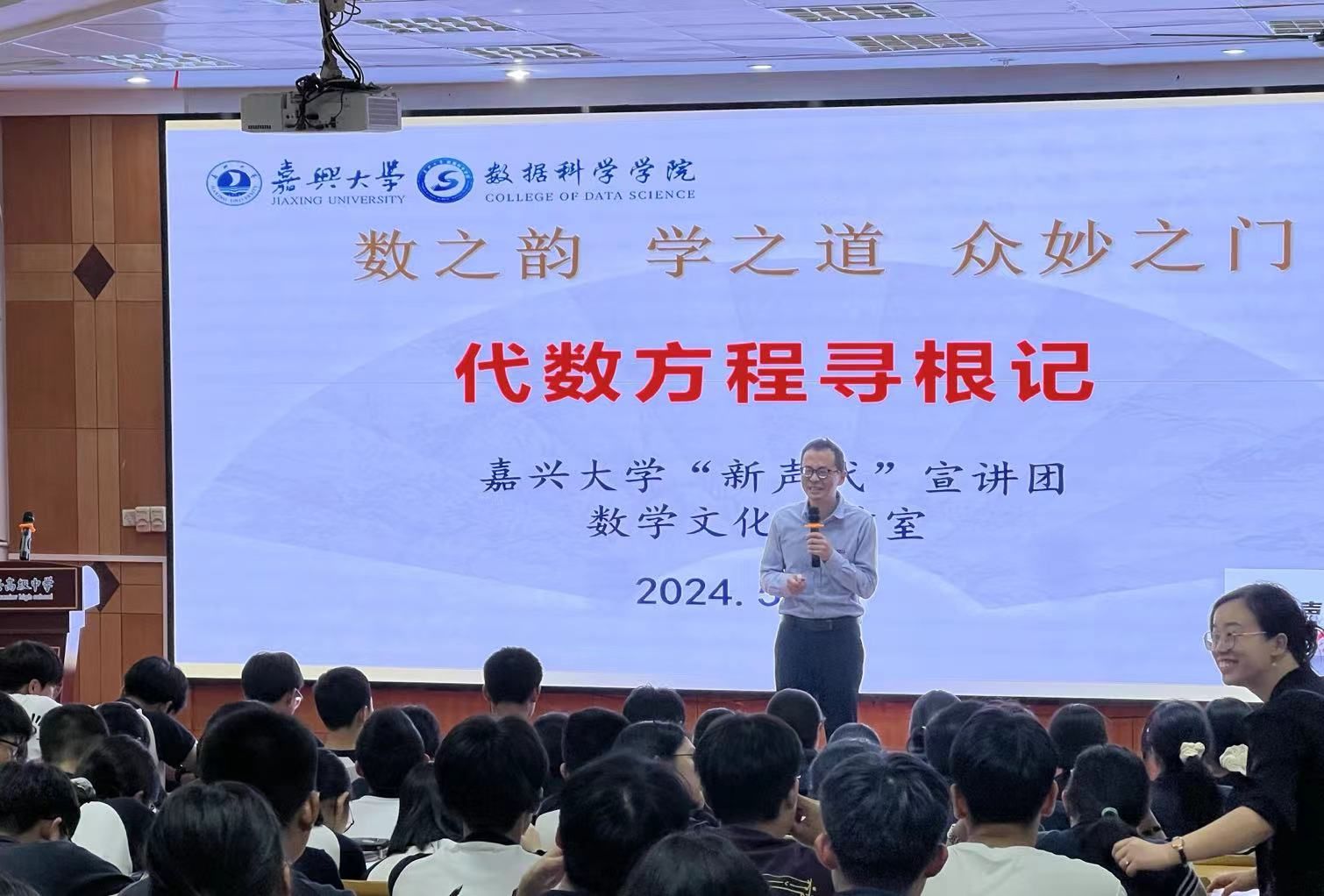 在嘉兴市科协学会部的积极引荐与协作下,并得到本市相关中学领导的大力支持与配合,经过前期精心策划和准备,由首批“创新嘉兴.优才支持计划”嘉兴市教育拔尖人才——嘉兴大学а√中文在线资源库闵啸副教授领衔的数科“新声代”宣讲团联合数学文化工作室倡导的“数之韵,学之道,众妙之门”数学文化系列讲座近日顺利走进我市中学校园,于2024年5月27日和30日分别在清华附中嘉兴学校以及嘉兴高级中学各举办一场。本讲座旨在为广大中学生普及数学文化与应用知识,讲好数学故事,传播数学风尚,引导大家在数学的海洋中开拓视野,深化认知,增进思考,丰富理念,加强理学修养,提升数学兴趣。