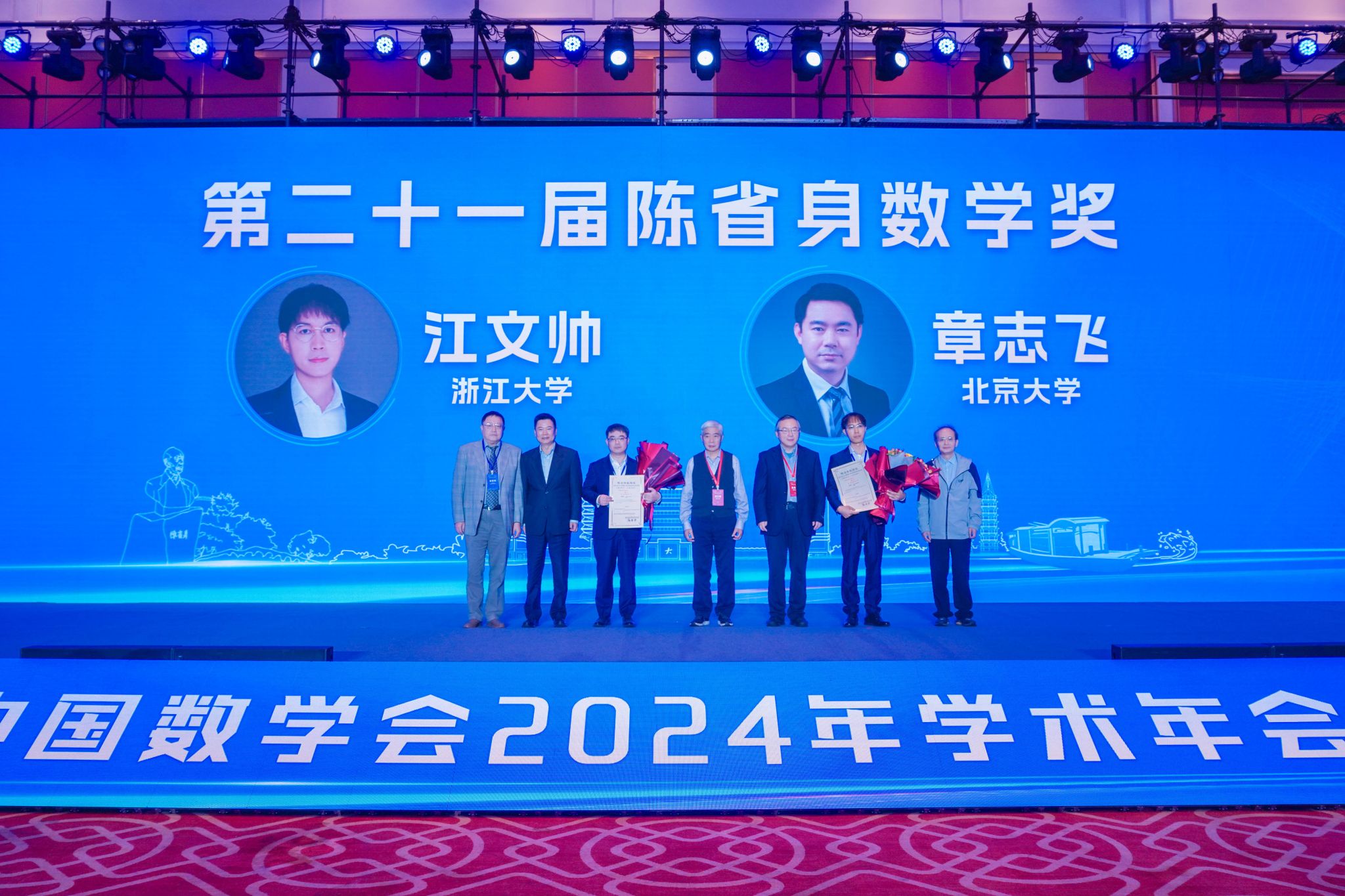 中国数学会“陈省身数学奖”主要奖励在数学领域做出突出成果的中国中青年数学家。浙江大学江文帅教授和北京大学章志飞教授获第二十一届陈省身数学奖。