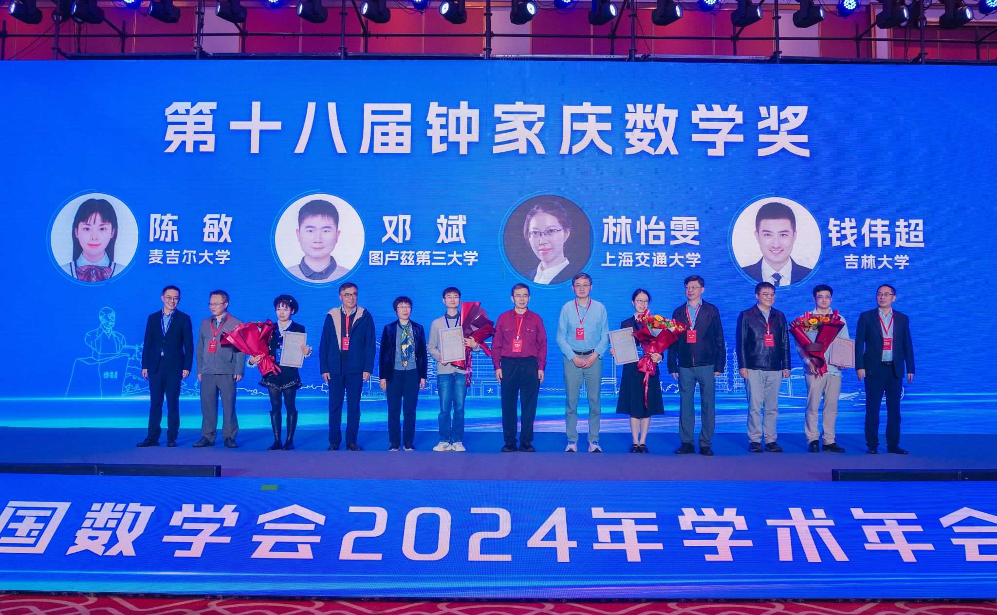 中国数学会“钟家庆数学奖”,用以表彰与奖励最优秀的数学专业博士研究生,旨在鼓励更多的年轻学者献身于数学事业。麦吉尔大学陈敏、图卢兹第三大学邓斌、上海交通大学林怡雯、吉林大学钱伟超获第十八届钟家庆数学奖。