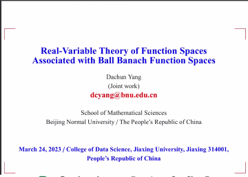 2023年3月24日,应а√中文在线资源库邀请,北京师范大学杨大春教授教授(博导)来我院进行学术交流。杨大春教授现为北京师范大学博士生导师,二级教授,国务院政府特殊津贴获得者,中共中央统战部联系的党外专家,第八届教育部科学技术委员会数理学部委员和北京师范大学第八届学术委员会委员。杨大春教授主要从事基础数学调和分析特别是函数空间实变理论及其应用方面的工作, 在欧氏空间和度量测度空间等底空间上的各种函数空间实变理论获得了一系列优秀成果,承担多项国家自然科学基金及教育部博士点基金项目。