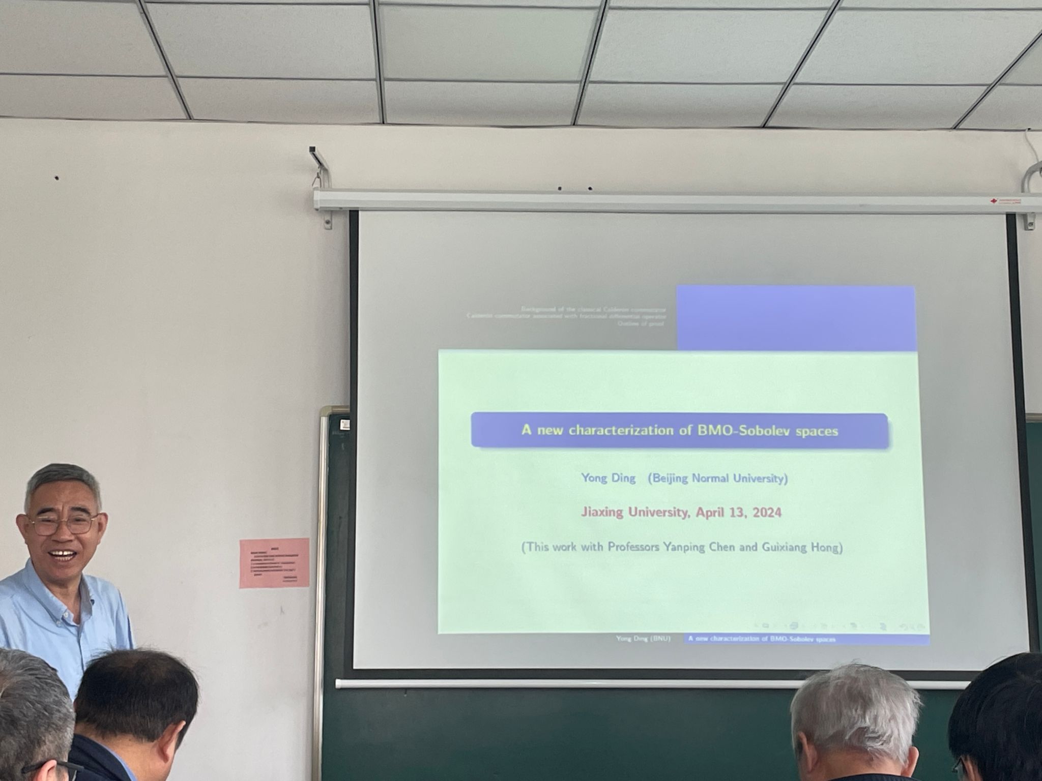 讲座由а√中文在线资源库马柏林教授主持,学院部分老师、本科生参加了讲座。丁教授从函数空间理论出发,以“BMO-Sobolev空间的一个新特征”为主题,介绍了BMO-Sobolev空间的最新研究进展。
