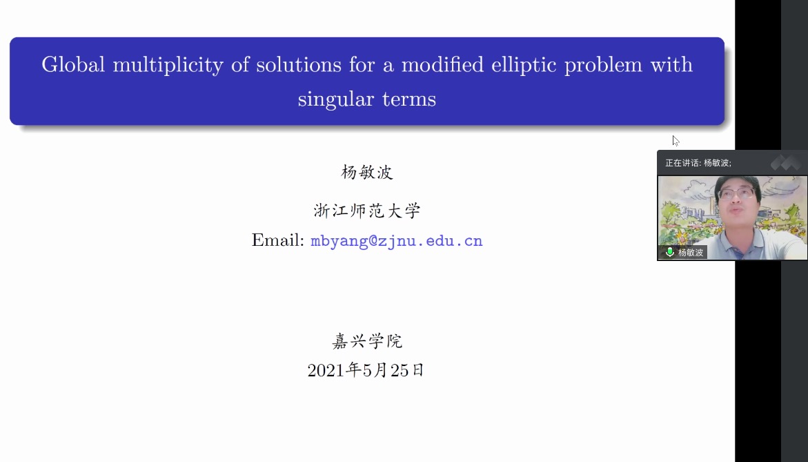 2021年5月25日晚上7点,浙江师范大学初阳学院副院长、博士生导师杨敏波教授应邀通过腾讯会议为我院师生做学术报告。讲座由刘海东副教授主持,学院部分老师、本科生和联培研究生参加了本次学术报告。