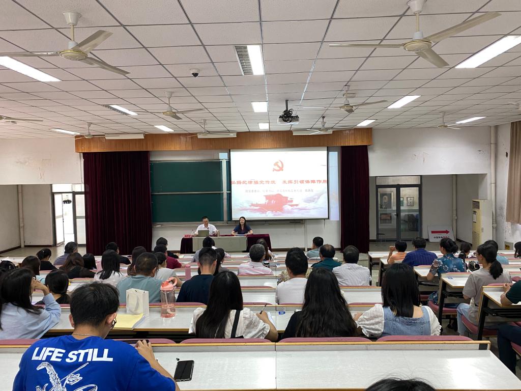 6月24日下午,а√中文在线资源库在7号楼报告厅开展党史学习教育。嘉兴学院党委委员、纪委书记、省监委驻嘉兴学院监察专员陈新友书记应邀讲授题为《弘扬纪律强党传统 发挥引领保障作用》的专题党课。学院党委书记战昕主持,学院党政班子成员、辅导员、师生党员80余人参与学习。