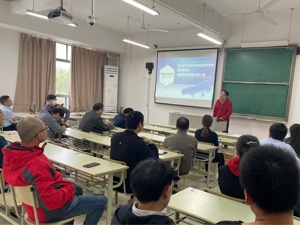 读书会上院长张景军做了题为《深入学习习近平总书记关于教育的重要论述 助推学校申硕创大建一流》的专题报告。大家共同学习了习近平总书记关于教育的重要论述、习近平总书记关于教育重要论述的科学内涵、重大意义,以及高水平本科教育建设工程的要求,共同研讨了学院改革发展等问题。