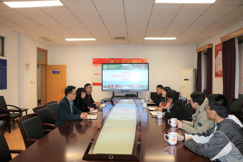 为了进一步做好党建引领,落实博士服务地方专项行动。3月2日下午,а√中文在线资源库学院党委书记战昕一行赴嘉兴一中开展学习交流,嘉兴一中党委书记沈微微、副校长张建斌、课程教学处主任廖立平参加交流会。