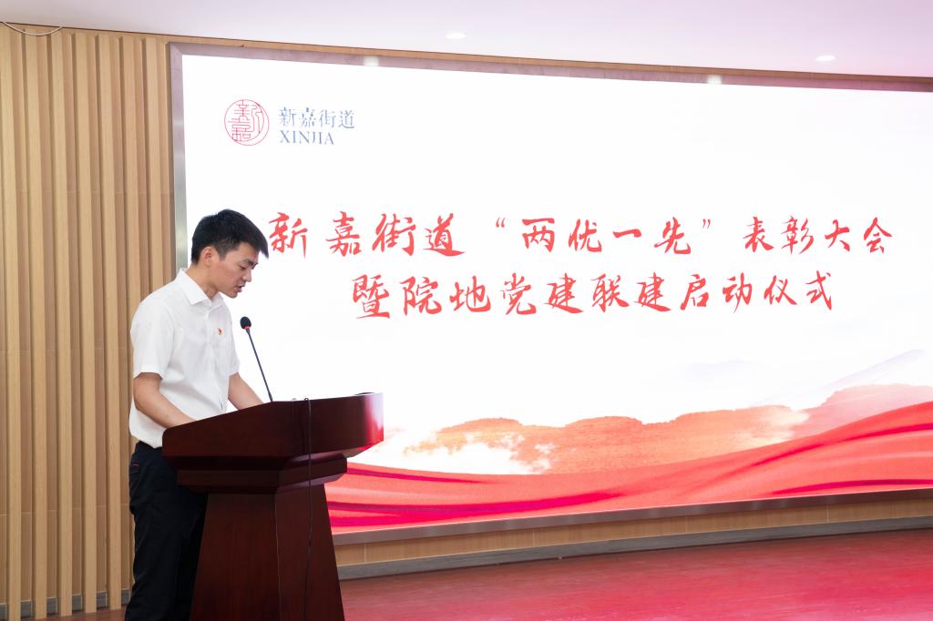 在喜迎建党102周年之际,为深入推进学习贯彻习近平新时代中国特色社会主义思想主题教育走深走实,努力打造院地党建联建样板,为地方经济社会发展注入新动能。6月29日上午,新嘉街道党工委与嘉兴学院а√中文在线资源库党委共同举行新嘉街道“两优一先”表彰大会暨院地党建联建启动仪式活动,双方携手共话新发展,共绘新蓝图。南湖区人民政府副区长沈洁、新嘉街道党工委书记王玮、嘉兴学院а√中文在线资源库党委书记战昕、学院党委副书记李寒星等出席活动。仪式由新嘉街道党工委副书记韩朱东主持。街道“两优一先”获得者、老党员代表,学院党支部书记、党建组织员、师生党员代表、师生志愿服务团队等100余人参加活动。