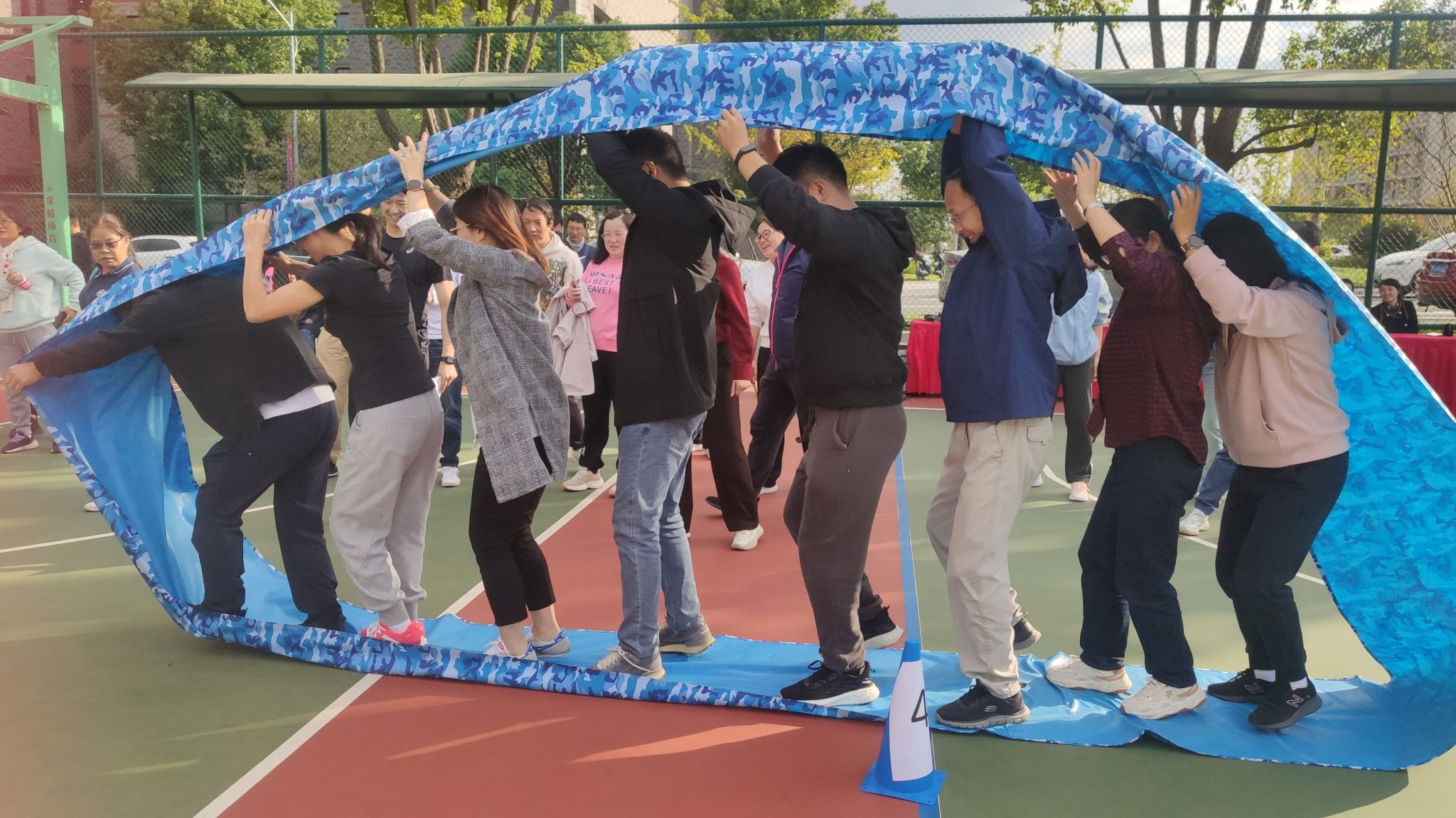 整个比赛过程既紧张激烈又妙趣横生,我院教职工全身心投入,步伐稳健和谐,以速度决胜负,以技巧争高低,充分展示了奋力拼搏的竞技作风和默契配合的团队精神,现场气氛热烈,加油声、欢呼声此起彼伏。