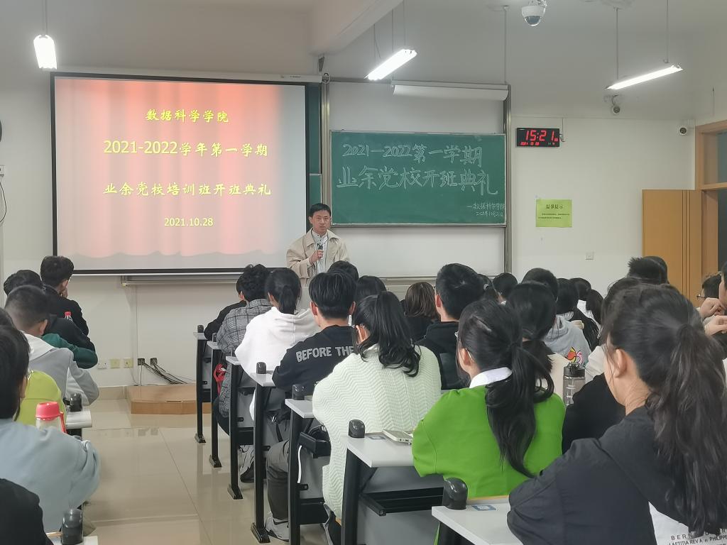 10月28日下午,а√中文在线资源库在兴礼楼319举行2021-2022学年第一学期业余党校开班典礼。典礼由党校班主任吴飞燕老师主持,院党委副书记李寒星及本期学员共计90余人参加。